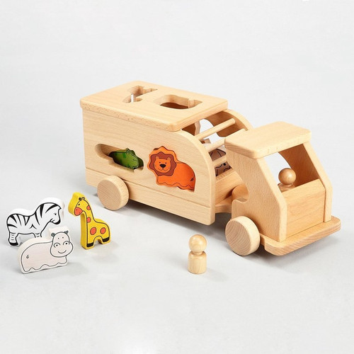 Let your child’s imagination roll with the PlayMe Moving Zoo, a beautifully handcrafted wooden shape sorter designed for children aged 3 and up.