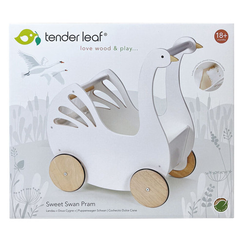The Sweet Swan Prams is a graceful and pretty wooden pram that will enchant little ones during their imaginative playtime adventures.